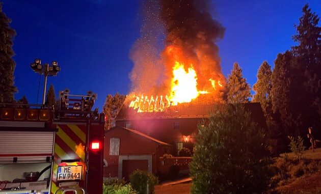 FW-Velbert: Dachstuhlbrand fordert die Feuerwehr
