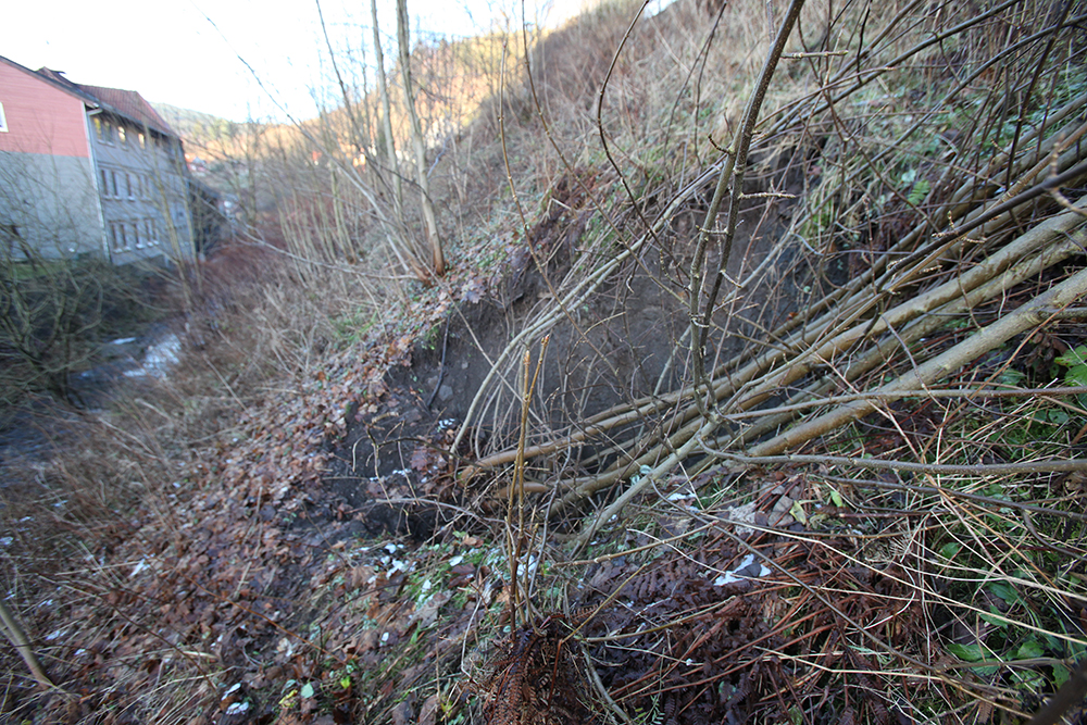 Im Böschungsbereich der Innerste in Wildemann ist am Samstagmittag ein Tagesbruch gefallen.