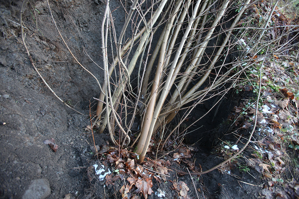 Rund zweieinhalb Meter Durchmesser und vier Meter Tiefe misst das Loch, in das auch ein kleiner Baum gefallen ist.