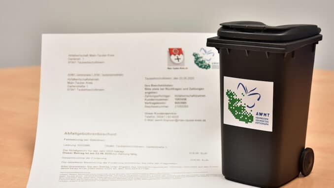 Die Gebührenbescheide für die Abfallentsorgung im Main-Tauber-Kreis im Jahr 2022 werden jetzt versandt. Der geforderte Betrag muss vor Fälligkeit an den Abfallwirtschaftsbetrieb Main-Tauber-Kreis (AWMT) überwiesen werden. Damit die Müllgebühren korrekt verbucht werden können, muss bei der Überweisung der Verwendungszweck laut Bescheid angegeben werden. Darauf weist der AWMT hin.