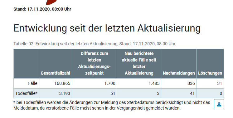 Am Dienstag, 17. November 2020, hat das Landesgesundheitsamt (LGA) Baden-Württemberg insgesamt weitere 2.135 bestätigte Infektionen mit dem Coronavirus gemeldet (Stand: 16.00 Uhr, siehe Tabelle im Tagesbericht COVID-19 (PDF)). Damit steigt die Zahl der seit Beginn der Pandemie Infizierten in Baden-Württemberg auf mindestens 120.861 an. Davon sind ungefähr 76.246 (+1.735) Personen bereits wieder von ihrer Covid-19-Erkrankung genesen. Derzeit sind geschätzt 42.283 (+364) Menschen im Land mit dem Coronavirus (SARS-CoV-2) infiziert.