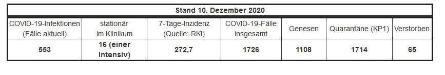Aktuelle Corona-Fallzahlen vom 10. Dezember 2020
