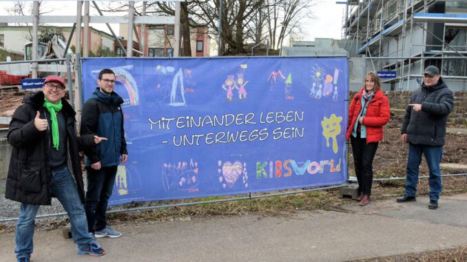 „Miteinander leben – unterwegs sein“ war die Malaktion überschrieben, zu der Kinder der Stadtteile Wartberg und Reinhardshof eingeladen waren. Initiiert hatte die Aktion die Arbeitsgruppe (AG) „Öffentlichkeitsarbeit – Neue Soziale Mitte“. Weil die AG-Mitglieder von den Ergebnissen so beeindruckt waren, haben sie die besten Motive auf Banner drucken lassen und diese an verschiedenen Stellen des Geländes aufgehängt.