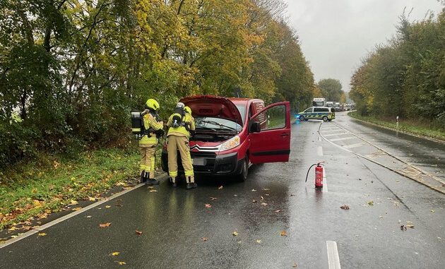 Vor Ort wurde ein technischer Defekt am Fahrzeug festgestellt, der zu einer Rauchentwicklung führte. Der Motorraum wurde mit der Wärmebildkamera kontrolliert und die Fahrzeugbatterie abgeklemmt.