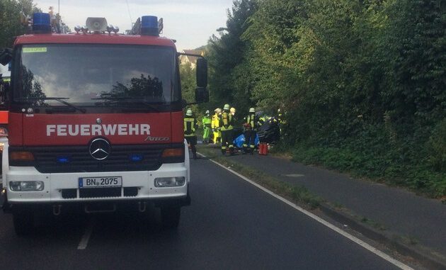 Bad Godesberg: Am frühen Dienstagabend wurde der Leitstelle von Feuerwehr und Rettungsdienst gegen 18:20 Uhr ein Alleinunfall eines PKW auf der Meckenheimer Straße gemeldet. Bei Eintreffen der ersten Kräfte der Freiwilligen Feuerwehr Mehlem, wurde eine verletzte Person – die in Ihrem PKW eingeschlossen war, vorgefunden. Unter Einsatz von hydraulischem Rettungsgerät wurde eine Zugangsöffnung in den PKW zur verletzten Person hergestellt. Nach einer medizinischen Erstversorgung wurde die Person aus dem PKW gerettet und dem Rettungsdienst zur weiteren Versorgung und anschl. Transport in ein Krankenhaus übergeben.