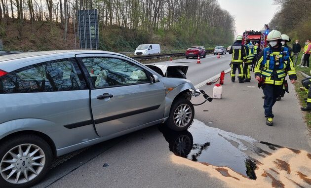 Gegen 19.03 Uhr kam es auf der Bundesautobahn (BAB) 43 auf der Richtungsfahrbahn Münster in Höhe des Autobahnkreuzes zur BAB 40 zu einem Auffahrunfall mit zwei beteiligten PKW.