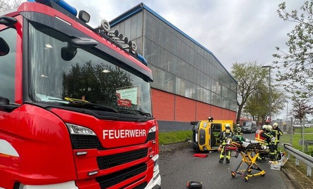 Um kurz nach 9 Uhr wurde die Feuerwehr in die Bahnstraße in Bochum Weitmar alarmiert. Dort war ein Transporter umgestürzt und der Fahrer sollte sich noch eingeklemmt im Führerhaus befinden.