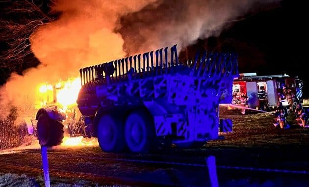 Nur kurze Zeit später erreichte ein Notruf aus Liedern die Feuerwehr Bocholt. Hier sollte ein Traktor brennen. Daraufhin wurde die Freiwillige Feuerwehr Suderwick, die Brandweer Dinxperlo (NL) und der hauptamtliche Löschzug alarmiert. Der Traktor brannte beim Eintreffen der Einsatzkräfte bereits in voller Ausdehnung. Dieser wurde abgelöscht. Der Fahrer des Traktors konnte die Fahrerkabine unverletzt verlassen.