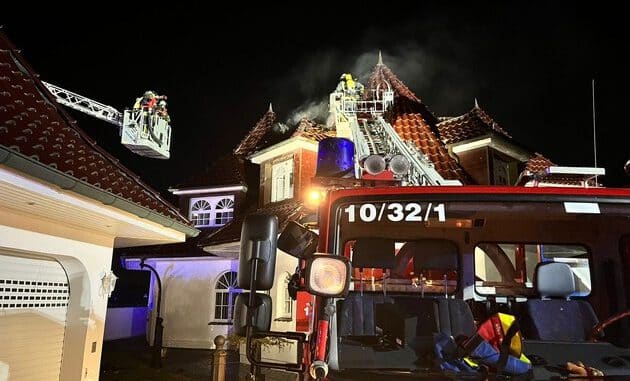 Bei Eintreffen der Feuerwehr lag kein Gebäudebrand vor. Es brannte in einem Simskasten. Durch einem Trupp wurden zunächst im Außenangriff die Flammen niedergeschlagen und eine Riegelstellung aufgebaut. Im weiteren Einsatzverlauf mussten zur Brandbekämpfung Wand- und Deckenverkleidungen im Innenraum sowie Teile des Daches im Außenbereich aufgenommen werden. Hierbei kam eine Drehleiter zum Einsatz. Eine weitere Drehleiter ging vorsorglich in Stellung.