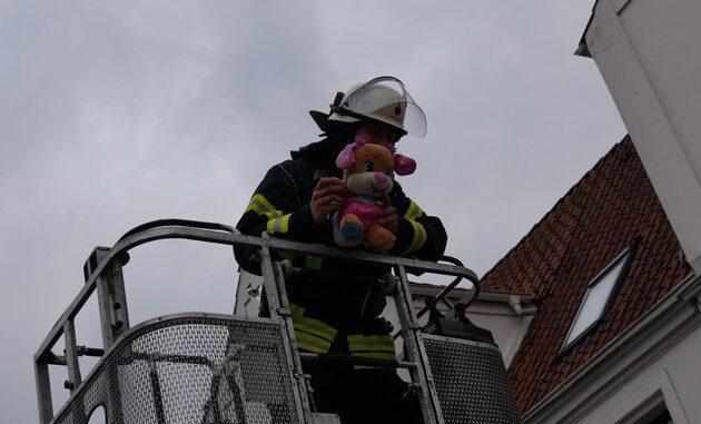 Während des Einsatzes in der Hannoverschen Straße (Bericht vom 22.04.2022 – 20:08 Uhr) stellte die Besatzung der in Bereitstellung gegangenen Drehleiter mehrere Kuscheltiere und Spielzeuge unterhalb eines Dachfensters in der Dachrinne fest. Nach Ende des Brandeinsatzes übernahm die Drehleiter den neuen Einsatz und ging zur „Kuscheltierrettung“ vor. Die geretteten Kuscheltiere und Spielzeuge konnten am Boden dem glücklichen Besitzer übergeben werden.