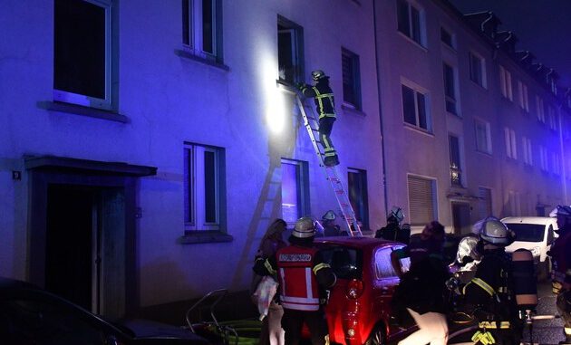 Am frühen Morgen kam es in der Cheruskerstrasse in Dortmund Hörde zu einem Kellerbrand. Aufgrund der enormen Rauchentwicklung mussten zwei Bewohner in ein Dortmunder Krankenhaus eingeliefert werden, sieben weitere Personen waren betroffen. Bei Eintreffen der Einsatzkräfte war bereits der komplette Hausflur des dreieinhalb geschossigen Wohngebäudes stark verraucht. An zwei Fenstern machten sich Personen bemerkbar, deren Wohnung bereits verraucht waren. Diese zwei Bewohner wurde dann durch die Einsatzkräfte mit der Drehleiter gerettet. Sechs weitere Personen wurden mittels Fluchthauben aus dem Gebäude geführt.