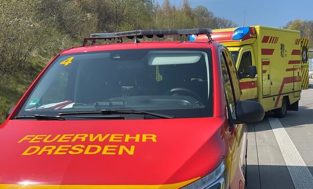Der Integrierten Regionalleitstelle Dresden wurde ein Verkehrsunfall mit zwei Lastkraftwagen gemeldet. Aus noch zu ermittelnder Ursache waren ein Sattelzug DAF mit einem Sattelzug MAN zusammengestoßen. Dabei wurde der Fahrer des DAF schwer verletzt. Er konnte sich aus eigener Kraft aus seinem Fahrzeug befreien und wurde vom Rettungsdienst notärztlich versorgt. Nach der Herstellung der Transportfähigkeit wurde er mit einem Rettungswagen in ein Krankenhaus transportiert. Einsatzkräfte der Feuerwehr sicherten die Einsatzstelle und die Fahrzeuge. Weiterhin verhinderten sie die Ausbreitung auslaufender Betriebsmittel wie Getriebeöl und Kraftstoff. Dazu wurde Bindemittel großflächig auf die Fahrbahn aufgebracht. Für die Dauer des Einsatzes ist die Richtungsfahrbahn Dresden-Prag derzeit voll gesperrt. Die Polizei hat die Einsatzstelle und die Ermittlungen zur Unfallursache übernommen. Im Einsatz waren 32 Einsatzkräfte der Feuer- und Rettungswachen Albertstadt, Übigau und Löbtau, der Rettungswachen Friedrichstadt und Freital, der B-Dienst sowie die Stadtteilfeuerwehr Gorbitz.
