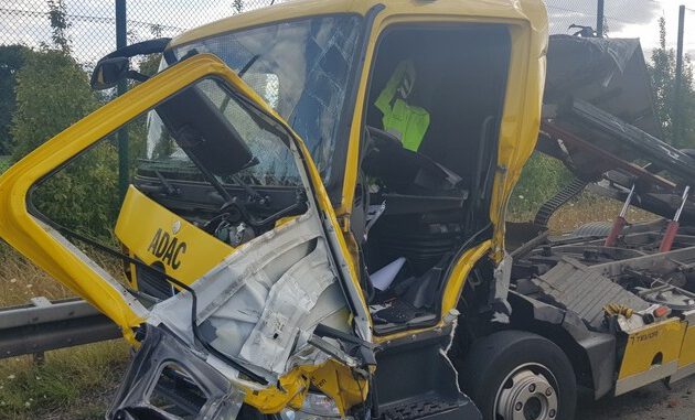 Die Feuerwehr Düren, der Rettungsdienst und die Autobahnpolizei wurden am Mittwoch gegen 17:00 Uhr zu einem Verkehrsunfall auf der Bundesautobahn zwischen den Anschlussstellen Düren und Merzenich alarmiert. Ein Abschleppunternehmen wollte ein liegengebliebener PKW auf der Standspur aufladen als es zu diesem Unfall kam. Ein 40 Tonnen LKW touchierte zuerst den Pannen PKW anschließend den LKW des Abschleppdienstes und durchbrach die rechten Leitplanken bis dieser LKW nach ca. 200 Meter zu stehen kam. Dabei wurde der Fahrer des Abschleppfahrzeuges verletzt und nach notärztlicher Erstversorgung vom Rettungsdienst in einer Dürener Klinik gefahren. Die Feuerwehr stellte den Brandschutz sicher und konnte mit Spezialbehälter mehrere hundert Liter Diesel auffangen. Der schon ausgelaufene Dieselkraftstoff wurde mit Ölbindemittel der Feuerwehr aufgenommen. Nachdem die Polizei und die Straßenmeisterei zusätzlich die Einsatzstelle abgesichert hatten, konnten alle Fahrzeuge geborgen werden und unter Aufsicht des Umweltamtes Kreis Düren die Fahrbahn von einer Spezialfirma gereinigt und die aufgefangenen Betriebsstoffe abgesaugt werden. Im Einsatz waren 40 Einsatzkräfte der Feuerwehr Stadt Düren und des Rettungsdienstes Stadt und Kreis Düren. Nach ca. 2,5 Stunden Einsatzzeit konnte die Feuerwehr die Einsatzstelle an den Straßenbaulastträger NRW übergeben.