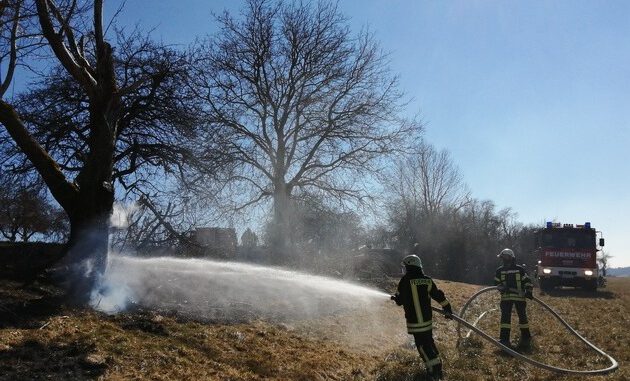 Verschiedene große brennende Flächen waren am 10. März gegen 12:30 Uhr gemeldet worden. Zur Löschung der Brände oberhalb von Eigeltingen-Heudorf wurde die Abteilungen Heudorf, Eigeltingen und Rorgenwies alarmiert. Aus ungeklärter Ursache brannte ein ca. halber Hektar großes Wiesenstück mit Bäumen auf einer Länge von ca. 200 Metern. Das Feuer konnte von den angerückten 30 Angehörigen der Feuerwehr schnell gelöscht werden. Mit dem feuerwehreigenen Wasserfass der Abteilung Heudorf wurden am Nachmittag dann noch Nachlöscharbeiten durchgeführt. Hier war zur Aufsicht auch eine Brandwache gestellt worden, damit ein erneutes Auflodern der Flammen frühzeitig erkannt und dann gleich gelöscht werden konnte.