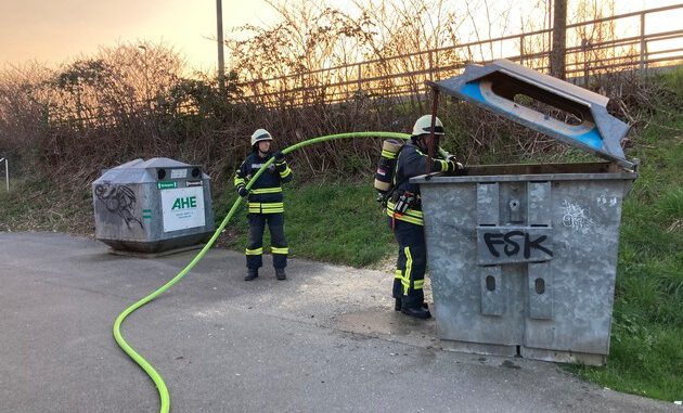 Der Brand eines Altpapiercontainers an der Ruhrstraße sorgte um 19:40 Uhr für einen weiteren Einsatz der hauptamtlichen Kräfte. Der Brand wurde zunächst mit einem C-Rohr abgelöscht und der Container anschließend mit Löschschaum gefüllt.