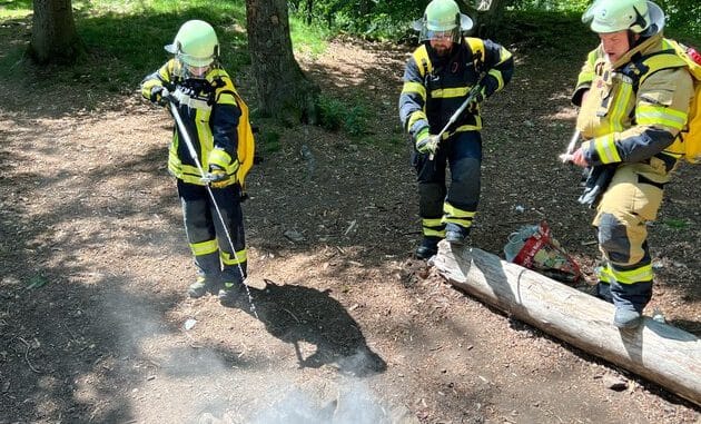 Ein Kleinbrand aus dem Waldgebiet am Kallenberger Weg wurde um 14:29 Uhr gemeldet. Dort brannten mitten im unwegsamen Gelände die Reste eines Lagerfeuers. Zu dieser Einsatzstelle musste die Feuerwehr schon öfters ausrücken. Offenbar hatten sich hier in der Nacht wieder einige Personen versammelt. Das Feuer wurde mit mehreren Löschrucksäcken abgelöscht.