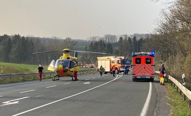 Bereits wenige Minuten nach Alarmierung landete „Christoph 8“ auf der Straße Wodantal in unmittelbarer Nähe zur Einsatzstelle. In der Zwischenzeit wurden die Patienten in den Rettungswagen weiter versorgt und auf den Transport mit den Hubschraubern vorbereitet.
