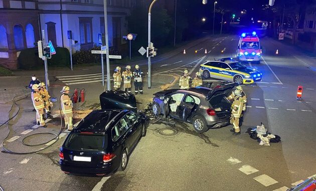 Um kurz vor Mitternacht des heutigen Ostermontags (10.04.2023) wurde die Feuerwehr Frankenthal zu einem Verkehrsunfall mit zwei beteiligten Fahrzeugen alarmiert, bei dem die Anzahl der Verletzten und ob diese eingeklemmt sind unklar war.