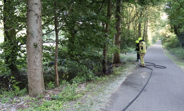 Die Feuerwehr Gangelt wurde heute Abend um 19:39 Uhr zu einem Vegetationsbrand am Rodebach in Gangelt alarmiert. Vor Ort stellten die Einsatzkräfte fest, dass entlang eines Radweges an der Dahlmühle die Böschung an mehreren Stellen in Brand geraten war. Durch die frühzeitige Alarmierung und das schnelle Eingreifen der Feuerwehr konnte ein Übergreifen des Brandes auf weitere Bereiche und anliegende Wiesen verhindert werden. Nachdem das Feuer gelöscht und die umliegende Fläche ausgiebig gewässert wurde, kontrollierte die Feuerwehr den Bereich noch einmal mit einer Wärmebildkamera. Nach rund einer halben Stunde war der Einsatz für die Feuerwehr beendet.