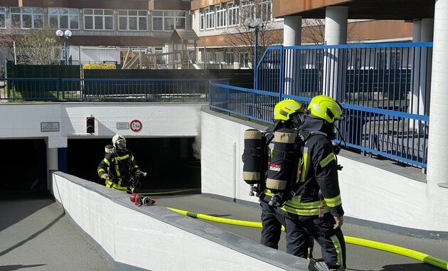 In den Mittagsstunden des Freitag rückten die Einsatzkräfte der Feuerwehr Gelsenkirchen zu einem gemeldeten Brand in einer Tiefgarage in Buer aus. Um 12 Uhr lief der Notruf in der Leitstelle ein. Der Anrufer berichtete von schwarzem Brandrauch, der aus dem Untergeschoss eines Wohn- und Geschäftshauses an der Cranger Straße dringen sollte. Bereits nach wenigen Minuten trafen die Einheiten der Wache Buer und Hassel an der Einsatzstelle ein. Aus den Lüftungsgittern eines Technikraums quollen schwarze Rauchschwaden. Durch Atemnschutzgeräte geschützt, verschafften sich die Feuerwehrmänner Zugang zum Untergeschoss. In dem stark verrauchten Raum fanden sie einen brennenden Schaltschrank vor, der Teil der dortigen Notstromversorgung war. Unter Zuhilfenahme von mehreren Kohlendioxidlöschern konnten sie die Flammen schnell unter Kontrolle bringen. Auf Grund der verwinkelten Gebäudestrukturen, zogen sich die Lüftungsmaßnahmen allerdings noch einige Zeit hin. Die letzten der zwanzig alarmierten Einsatzkräfte verließen um kurz nach 14 Uhr den Einsatzort. Menschen kam nicht zu Schaden.