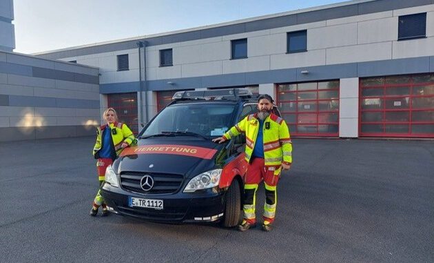 Am 03.05.23 wurde die Feuerwehr Gladbeck gegen 2:30 Uhr zur Winkelstr. in Gladbeck gerufen. Eine Bürgerin hat einen Hund, der in der Nähe der dort verlaufenden Bahnschiene ausgesetzt worden war, entdeckt. Es bestand der Verdacht, dass das Tier schon längere Zeit dort angebunden war. Den Einsatzkräften zeigte es sich als sehr verängstigt und unwillig, sich aus der Situation befreien zu lassen. Alle Versuche die durch die Feuerwehr unternommen wurden blieben erfolglos. Ein Hundeführer der Polizei konnte aufgrund eines anderen Einsatzes nicht zur Hilfe kommen. Es wurde die Tierrettung aus Essen verständigt. Mit ihrer Hilfe konnte nach längerer Zeit das Tier, mutmaßlich ein Golden Retriever Mischling, befreit werden. Zusammen mit der Tierrettung wurde das Tier in ein Tierheim gebracht. Die Tierretter wollen eine Öffentlichkeitsfandung veranlassen. Der Einsatz dauerte bis kurz nach 7:00 Uhr. Großen Dank spricht die Feuerwehr der Tierrettung-Essen e.V. für ihr schnelles und professionelles Arbeiten aus.