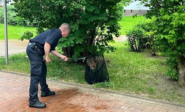 Es gelang unseren Tierrettern der Feuer- und Rettungswache 4 jedoch schnell, den Fuchs mittels eines Tier-Fangnetzes einzufangen und das Tier anschließend nahe einem Waldstück wieder auszusetzen.