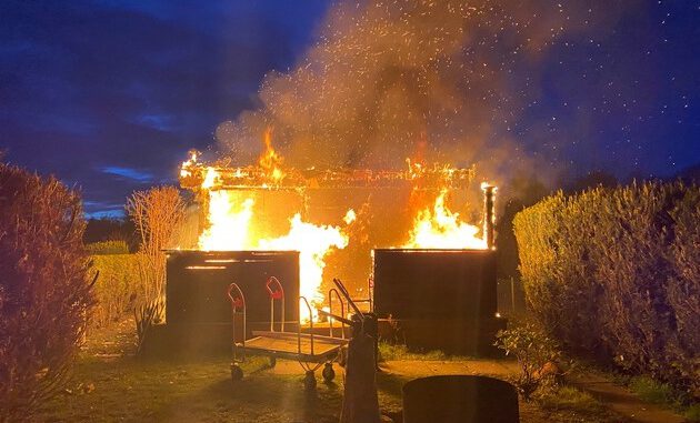 Gemeldet wurde eine brennende Gartenlaube in einem Kleingartenverein am Harbker Weg. Vor Ort bestätigte sich die Meldung. Nach Eintreffen der Löschfahrzeuge wurde umgehend mit der Brandbekämpfung begonnen. Vorlaufend mussten rund 120 m Schlachleitung zur Einsatzstelle und zusätzlich nochmal 100 m bis zum nächsten Hydranten verlegt werden, da die Laube mitten in dem Kleingartenverein lag. Vor Ort stand der vordere Bereich der Gartenlaube in Vollbrand. Personen waren nicht betroffen, es musste jedoch davon ausgegangen werden, dass Gasflaschen in der Laube lagerten. Dies bestätigte sich jedoch nicht. Nach Abschluss der Löschmaßnahmen wurde die Einsatzstelle der Polizei übergeben. Der Harbker weg musste für die Dauer des Einsatzes gesperrt werden.