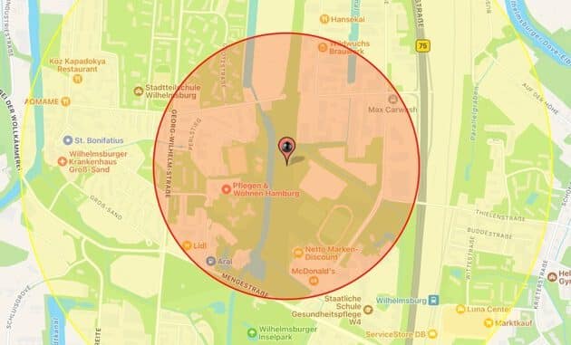 Durch den Kampfmittelräumdienst der Feuerwehr Hamburg wurden ein Sperrradius vom 500 Metern und ein Warnradius von 1.000 Metern festgelegt. Der Bereich innerhalb des Sperrradius wird komplett geräumt, innerhalb des Warnradius ist luftschutzmäßiges Verhalten angeordnet. In diesem Bereich darf man sich nicht im Freien aufhalten, sondern nur in Steingebäuden und darin auf der von der Bombe abgewandten Seite.