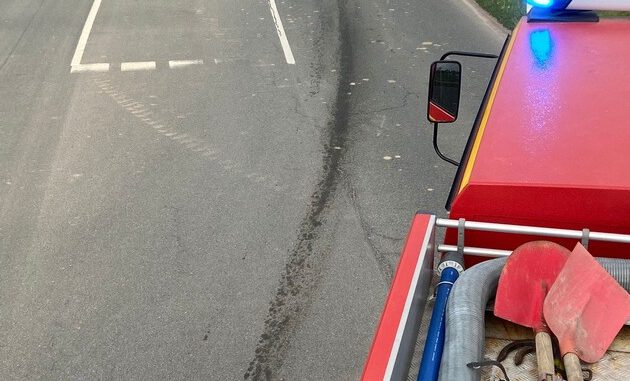 Bereits am Donnerstag Abend wurde die Feuerwehr zu einer insgesamt 25km langen Ölspur alarmiert. Diese zog sich quer durch das Kreisgebiet. Hier waren die Einsatzkräfte mehrere Stunden mit der Beseitigung beschäftigt.
