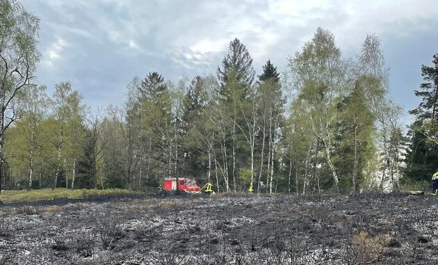 Am Samstagabend, den 22. April 2023, wurde die Feuerwehr um 18:21 Uhr mit dem Stichwort „Feuer Wald/Fläche 2“ alarmiert. Gemeldet war ein etwa 50 qm brennendes Heideareal.