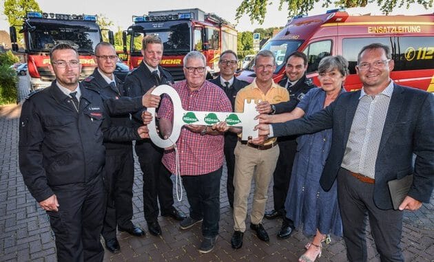 Die 2 Hilfeleistungslöschgruppenfahrzeuge, welche 2020 an die Feuerwehr Hünxe ausgeliefert wurden, sowie der Einsatzleitwagen, wurden in einem feierlichen Rahmen symbolisch an die Einsatzkräfte übergeben.
