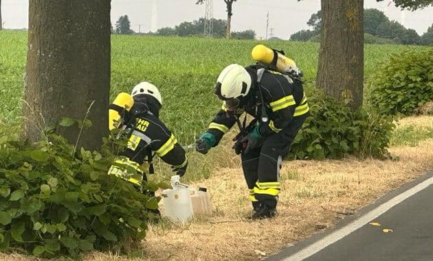 FW-KLE: Gefahrgut-Einsatz: Chemikalien-Kanister an Landstraße entsorgt