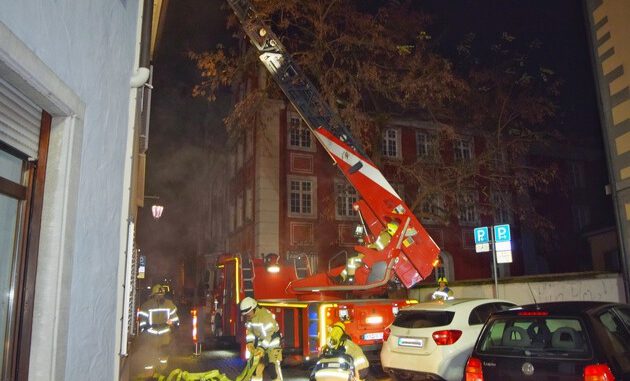 Im Hinterhof musste nach kurzer Zeit ebenfalls eine Steckleiter in Stellung gebracht werden. Weitere eingesetzte Kräfte retteten hier eine Person aus dem ersten Obergeschoss über die Leiter.