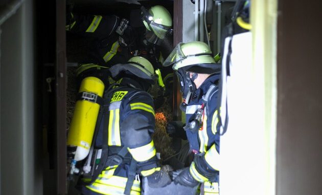Ein erster Trupp ging mit schwerem Atemschutz und einer Schlauchleitung in den Raum vor. Zusätzlich musste der Keller teilweise entleert werden, um an den Brandherd zu gelangen. Da hierfür weitere Atemschutzgeräteträger benötigt wurden, hat der Einsatzleiter weitere Kräfte der Feuerwehr nachalarmieren lassen.