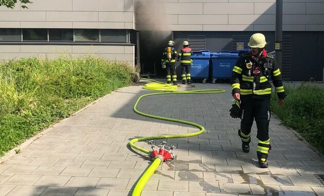 Bereits bei der Anfahrt war klar, dass es sich um einen echten Brand handelte. In einem Müllraum war aus bislang ungeklärter Ursache ein Feuer ausgebrochen.