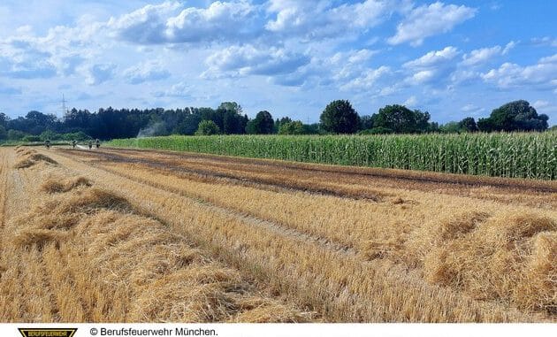 Am Samstagabend hat nicht das „Bett im Kornfeld“ gebrannt, es war das Stroh eines teilweise abgeernteten Kornfeldes. Die Berufs- und Freiwillige Feuerwehr konnten den Brand schnell gemeinsam unter Kontrolle bringen und ablöschen.