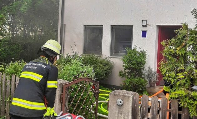 Mehrere Fahrzeuge der Feuerwehr München wurden zur gemeldeten Adresse entsandt. Hier bestätigte sich sofort die erhebliche Rauchentwicklung in und am Gebäude.