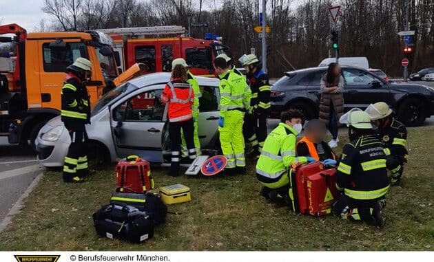 Mit Muskelkraft drückten die Feuerwehrmänner das Verkehrsschild zu Boden und öffneten die Fahrertür. Daraufhin konnte die junge Fahrerin ihr Fahrzeug eigenständig verlassen. Aufgrund des Unfallherganges entschied sich die Notarztbesatzung, die Frau zur Abklärung in eine Münchner Klinik zu transportieren.