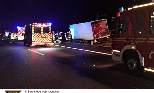 Ein 55-Jähriger fuhr mit seinem 7,5 Tonnen Lkw auf der Autobahn A99 in Fahrtrichtung Salzburg. Kurz nach der Eschenrieder Spange fuhr er auf einen anderen Lkw mit Sattelauflieger aus bisher unbekannter Ursache auf und landete im Anschluss im Grünstreifen neben der Fahrbahn.