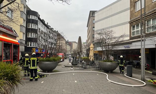 Am Sonntag, den 12.02.2023, wurde der Leitstelle der Berufsfeuerwehr Mülheim an der Ruhr eine Rauchentwicklung in einer Bäckerei im Bereich der Innenstadt gemeldet. Daraufhin wurden zwei Löschzüge zur Einsatzstelle entsandt. Schnell konnten sich Einsatzkräfte Zugang zum Brandobjekt verschaffen. Aufgrund der starken Rauchentwicklung konnte der Brandherd nicht sofort lokalisiert werden. Erst unter Einsatz eines Hochleistungslüfters konnte eine Rauchableitung erfolgen. Anschließend konnte der Brandherd aufgefunden und schnell abgelöscht werden. Weitere Glutnester in den Zwischendecken verzögerten den Einsatz. Durch weitere Einsatzkräfte wurden die angrenzenden Kellerbereiche, Treppenräume und Tiefgaragen kontrolliert.