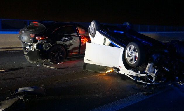 Gleich mehrere Schutzengel müssen auf der Ruhrtalbrücke unterwegs gewesen sein, als es in der Nacht zu einem schweren Verkehrsunfall kam. Aus ungeklärter Ursache kollidierten mehrere Fahrzeuge bei sehr hoher Geschwindigkeit miteinander. Alle Betroffenen konnten sich selbstständig aus den Fahrzeugen befreien. Nach dem Eintreffen der Rettungskräfte wurden die sechs Verletzten durch einen Notarzt gesichtet und durch Rettungswagen in umliegende Krankenhäuser gebracht. Ein Löschfahrzeug übernahm die Sicherung und die Ausleuchtung der Einsatzstelle. Die Autobahn blieb während der Rettungs- und Aufräumarbeiten komplett gesperrt. Im Einsatz waren vier Rettungswagen, ein Notarzt aus Mettmann, ein Löschfahrzeug und ein Einsatzführungsdienst.