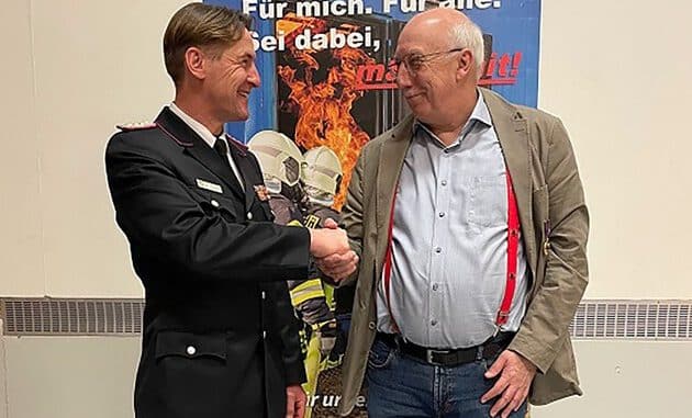 Fockbek – Auf einer Dienstversammlung der Wehren des Amtes Fockbek wurde am 31.03.2023 dem scheidenden Fachdienstleiter des Amtes, Hans-Jörn David, eine besondere Ehre zuteil. Er wurde mit der Deutschen Feuerwehr-Ehrenmedaille ausgezeichnet und erhielt zudem von Amtswehrführer Dr. Jan Traulsen die „Amtshosenträger der Wehren des Amtes Fockbek“.