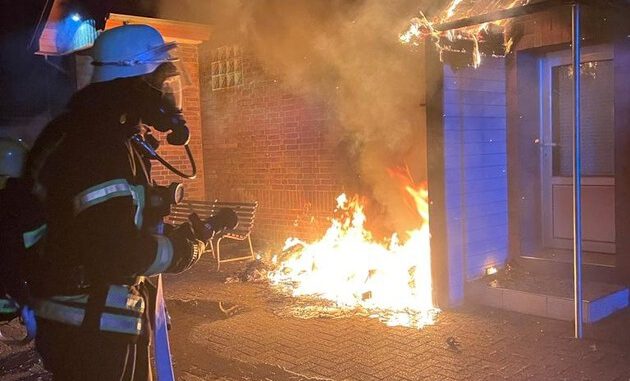 Am Einsatzort brannte jedoch kein PKW, sondern zwei Mülltonnen und ein angrenzender Dachüberstand.