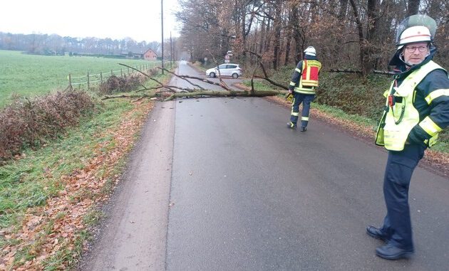 Mit dem Einsatzstichwort „Sturmschaden“ wurde der Löschzug Schermbeck zum Waldweg alarmiert.