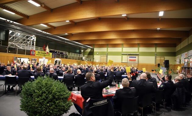 Der Einladung des Kreisfeuerwehrverbandes folgten neben zahlreichen Delegierten der 114 Freiwilligen Feuerwehren im Kreis Segeberg auch Ehrenmitglieder, Vertreter*innen aus der Politik auf Landes- und Kreisebene sowie viele Bürgermeister*innen einzelner Kommunen sowie Gäste von Hilfsorganisationen und der Polizei.