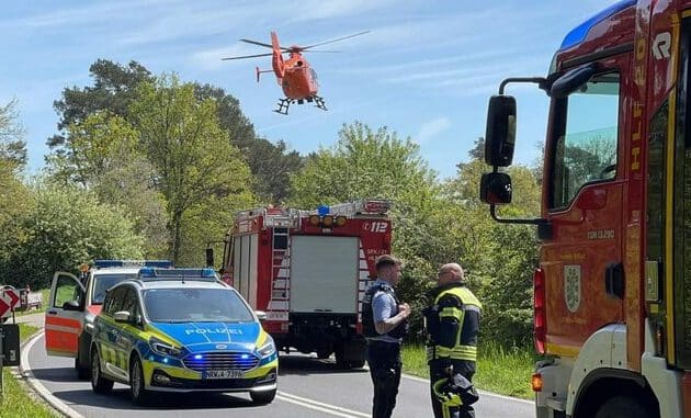 Zu einem schweren Verkehrsunfall ist es am Donnerstagmittag (04.05.2023) gegen 12:46 Uhr auf der Kreisstraße 1 zwischen Tüddern und Süsterseel in Höhe des Safarisees gekommen.