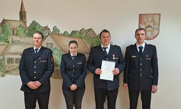 Im Anschluss konnte eine Kameradin zur Oberfeuerwehrfrau und ein Kamerad zum Löschmeister befördert werden. Bei zwei weiteren Kameraden wird die Beförderung zu Oberfeuerwehrmännern zeitnah nachgeholt. Zusätzlich konnte an diesem Abend noch die Ehrung eines Kameraden für 25 Jahre Einsatzdienst nachgeholt werden. Diesem wurde das Feuerwehr-Ehrenzeichen in Silber verliehen.