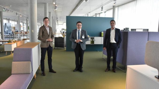 Landrat Christoph Schauder hat vor kurzem die Firma VS Vereinigte Spezialmöbelfabriken in Tauberbischofsheim besucht. Geschäftsführer Philipp Müller und der Geschäftsleiter Vertrieb, Stefan Beuschlein, gaben dem Landrat interessante Einblicke in die traditionsreiche Unternehmensgeschichte und zeigten ihm den Firmenhauptsitz. Die Firma VS ist international auf allen Kontinenten tätig und vertreibt dort Büro- und Schulmöbel sowie Ausstattung zur digitalen Bildung. Der Hauptsitz befindet sich in der Kreisstadt.