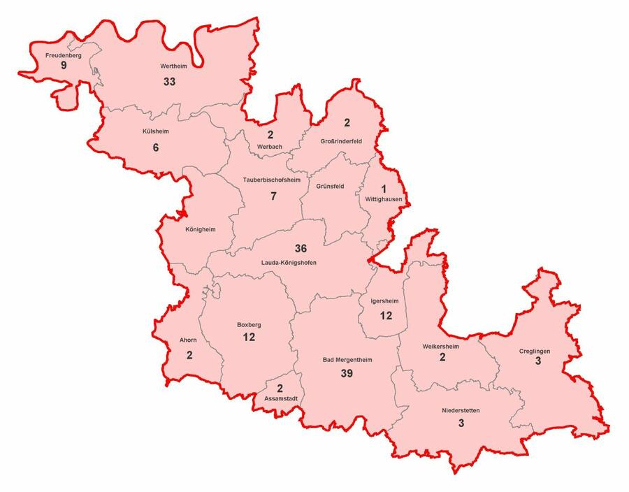 Die Zahl der Genesenen steigt um sieben Personen auf 5273. Somit sind derzeit 171 Personen im Landkreis aktiv von einer nachgewiesenen Infektion betroffen. Sie verteilen sich auf das Gebiet der Kommunen Ahorn: 2, Assamstadt: 2, Bad Mergentheim: 39 (+1), Boxberg: 12, Creglingen: 3 (+1), Freudenberg: 9, Großrinderfeld: 2, Grünsfeld: 0, Igersheim: 12 (+1), Königheim: 0, Külsheim: 6, Lauda-Königshofen: 36, Niederstetten: 3, Tauberbischofsheim: 7, Weikersheim: 2, Werbach: 2, Wertheim: 33 (+1) und Wittighausen: 1.