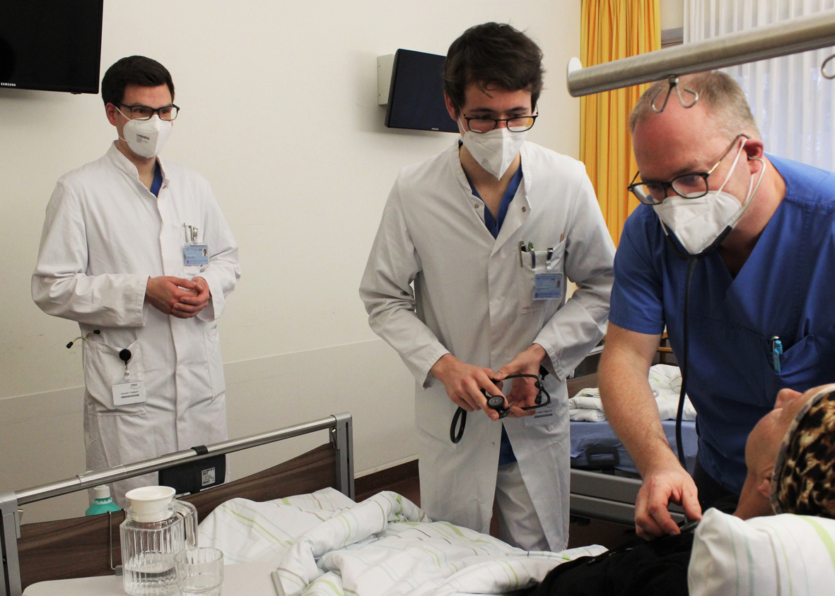 Seit Montag, 17. Januar 2022, besuchen die ersten 20 Studierenden der Medizinischen Fakultät Göttingen einen ersten Untersuchungskurs am Klinikum Wolfsburg. Zwei Wochen lang werden sie von verschiedenen Fachabteilungen in Fertigkeiten der körperlichen Untersuchung und Anamneseerhebung unterrichtet. Die Untersuchungstechniken werden gegenseitig und an Patienten geübt. Das ist zugleich der Startschuss für den MedizinCampus Wolfsburg der UMG.